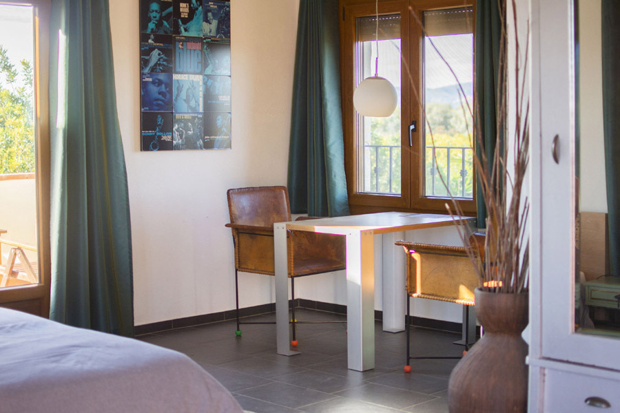 'Migjorn' betekent 'Zuiden'. Deze kamer heeft ramen en een balkondeur aan drie zijdes, waardoor je altijd uitzicht hebt. Bovendien is dit in de zomer lekker omdat er altijd wel een briesje staat. De kamer heeft een eigen ruim terras met ligstoelen op het zuiden.